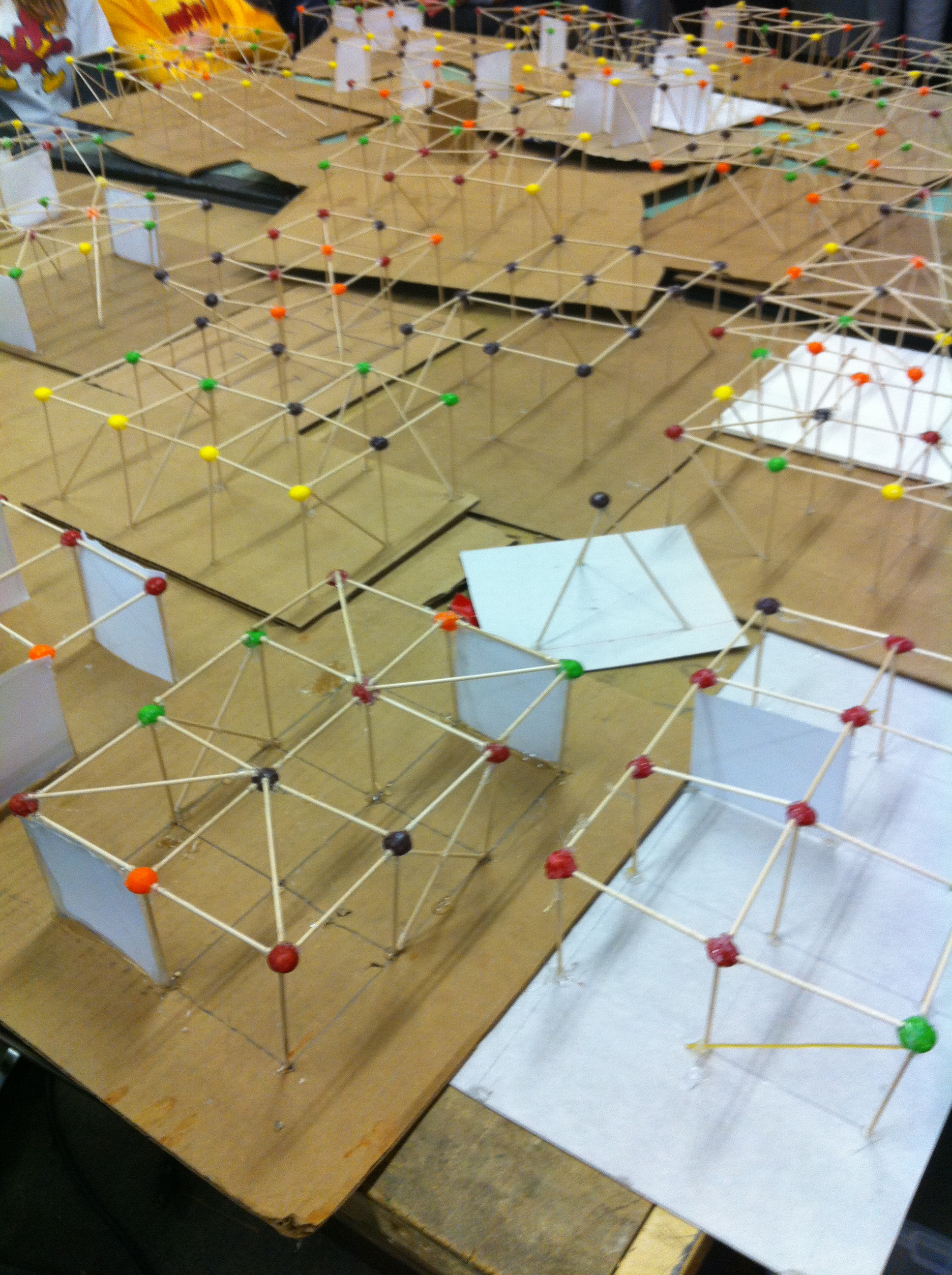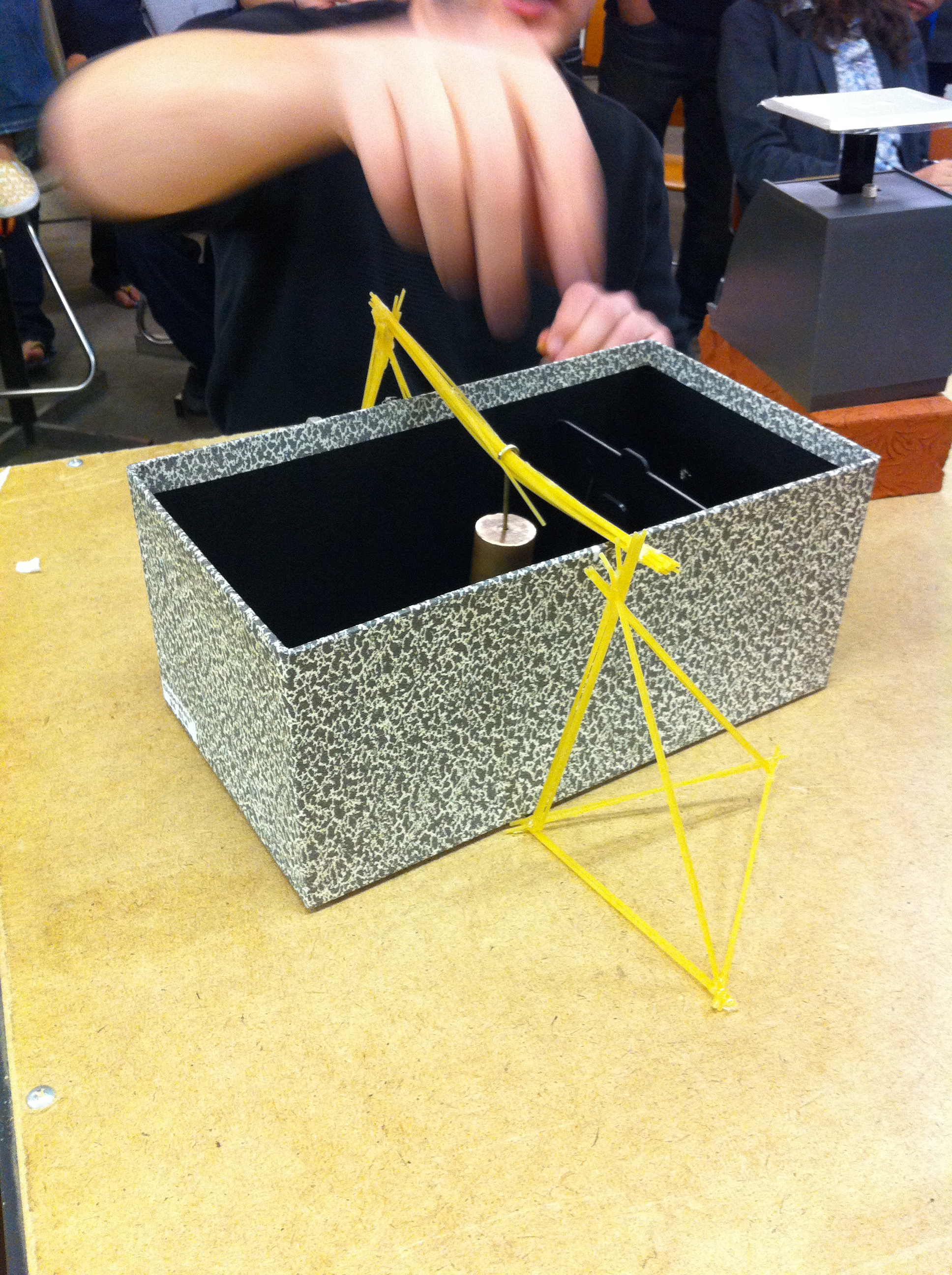 We’re waiting to get the lab notebooks back for this one, but already we’ve been able to use these images in lecture to talk about some basic equilibrium principles and structural types. Beats doing free body diagrams and trig as an introduction to statics, we think, especially for designers who will likely never size a beam, but who will need to know the fundamental principles behind shapes, systems, and types.