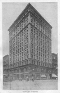 To me, this is evidence that the Beaux-Arts style wasn’t compatible with the need for daylight in speculative office development. Other than the Stewart, there was not a skyscraper that adhered to real Beaux-Arts compositional principles until the Continental and Commercial Bank (later the Edison) of 1907. The Stewart and its progeny–Burnham’s buildings for Merchant’s Loan and First National–all deployed classical ornament, but around windows that according to strict academic orthodoxy, were two or three times as large as proportion and taste dictated they should be.