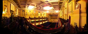 Still, I think he’s got a point here about the cognition of spaces on the part of the designers, but I’d take it a step further. As worrying as the lack of drawing in a typical office or school studio may be, I find the lack of model-building in the profession today even more staggering. Part of the new digital packages’ appeal is their fluent conversion of 2-D plans into three dimensions. It’s easier than ever to get your plans sorted out and to then tip them up into a spatial model that you can navigate on the screen, and while one might think this set designers up for even more engagement with real-world space, I’m not so sure. I suspect that, because the resulting spaces are constantly viewed on screens and on printouts, this nifty tech shortcut actually reinforces the tendency to composing photographs rather than orchestrating spaces. In other words, we’re still creating images, but instead of creating them directly we’re letting the CPU figure out what the image is going to be, given what we’ve input in terms of plans and sections. That’s marginally more engaged with space as a reality than Graves fears, but not much–the designer in this scenario ends up an editor more than a composer, which probably doesn’t get the job done all that well.