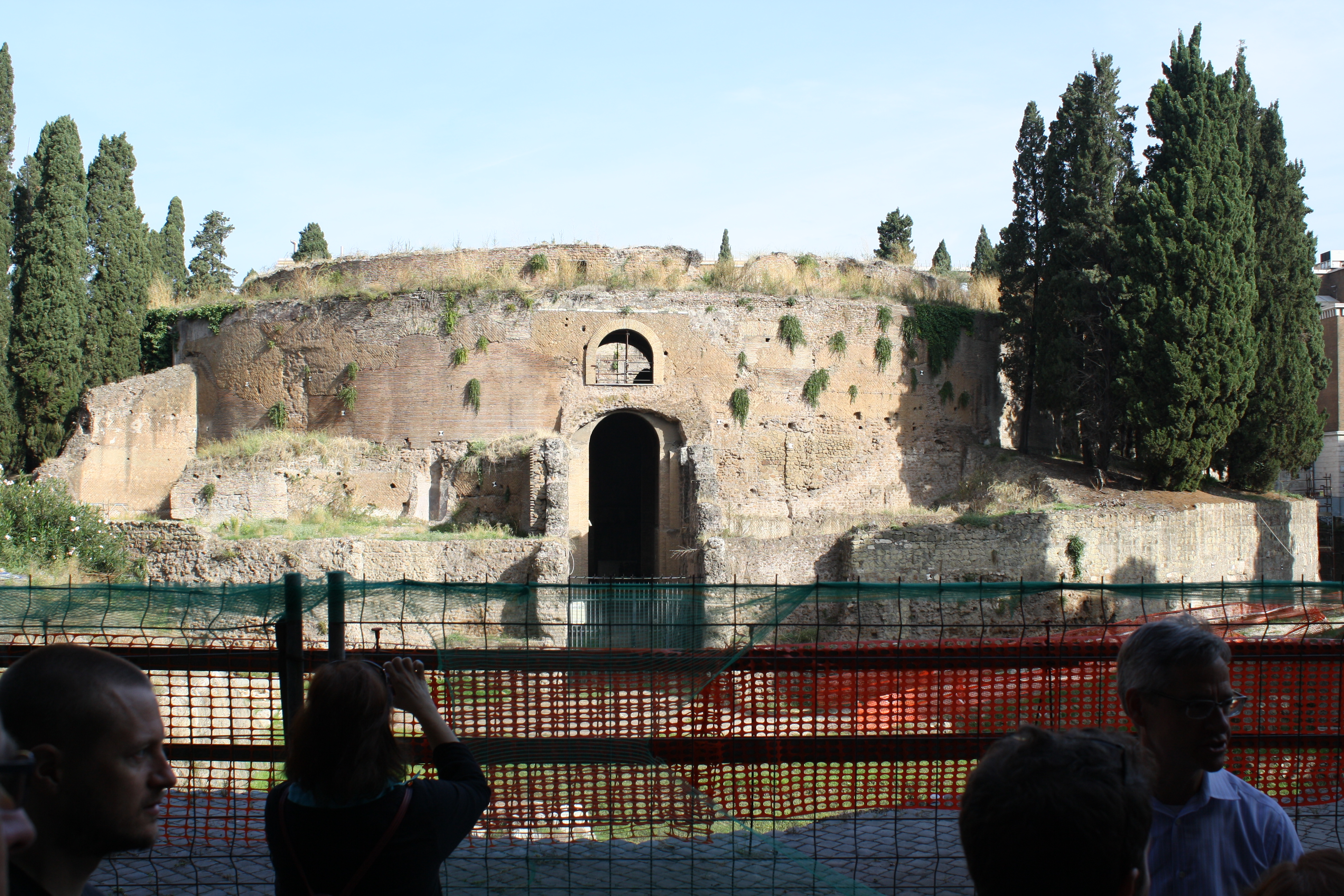 His Mausoleum was built outside of the city proper–hard to imagine now, and it was expressly intended to establish him as a dynastic ruler. Part of a city-wide building program, it’s one of the earliest examples of architecture as a really explicit statement of political power. After his death, the Ara Pacis was placed nearby as a way of memorializing his reign–and of emphasizing the power of the Emperors as heirs to the tradition he’d begun.