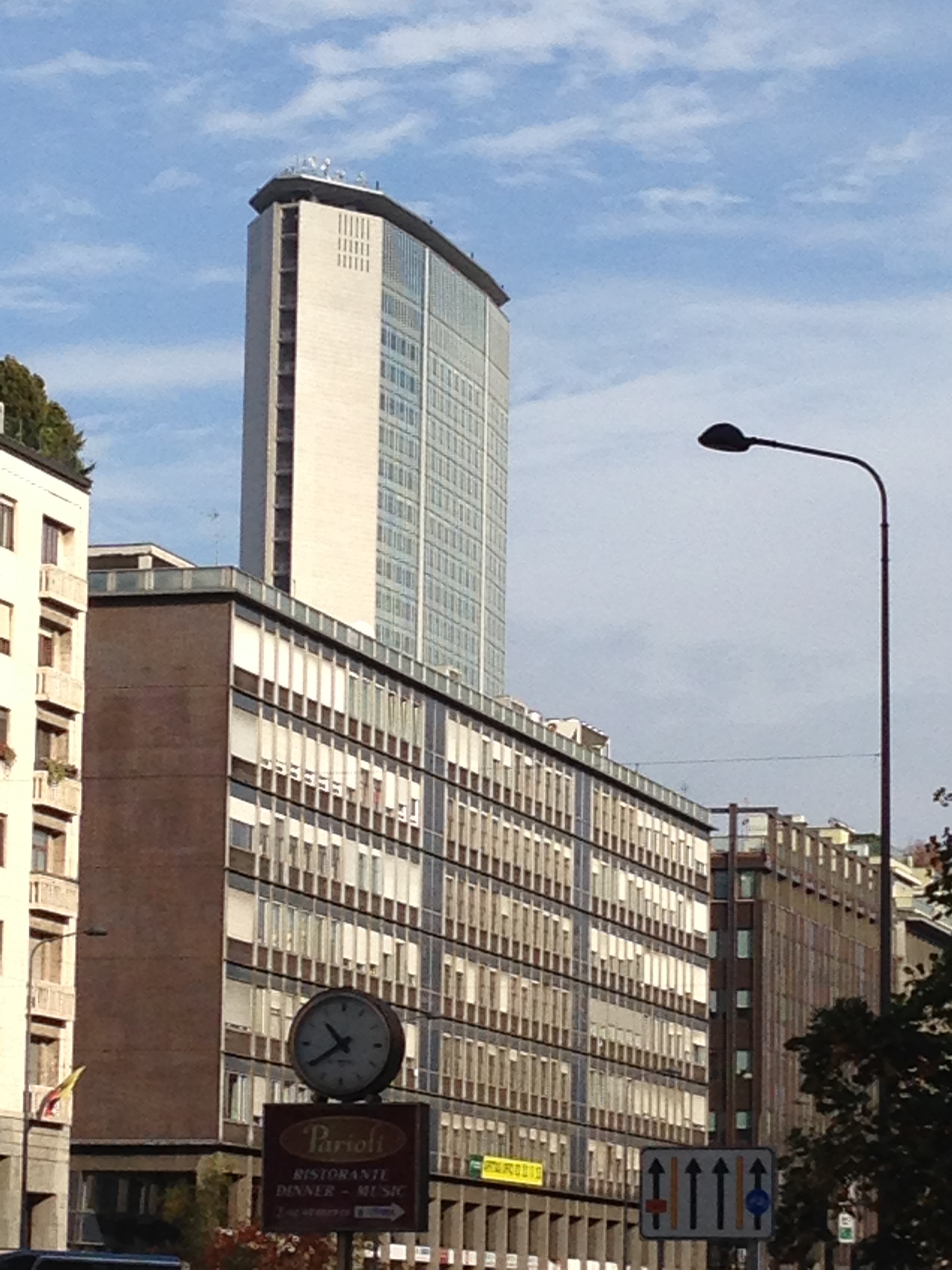 And Banham had a good point; despite a sloping plaza at the front (now gated and barricaded from the large Piazza Duca d’Aosta), the tower meets the ground in almost every possible unfortunate way–the building at the back tries to distinguish itself, essentially, by being boring. Compared with the ‘bustle’ that backs up Seagrams, this isn’t much to write home about, and Banham saw this as an indictment: in trying to gain a pure form, both Mies and Ponti had to shove plenty of program and function into minor structures that contradicted the tidy logic of the main tower.