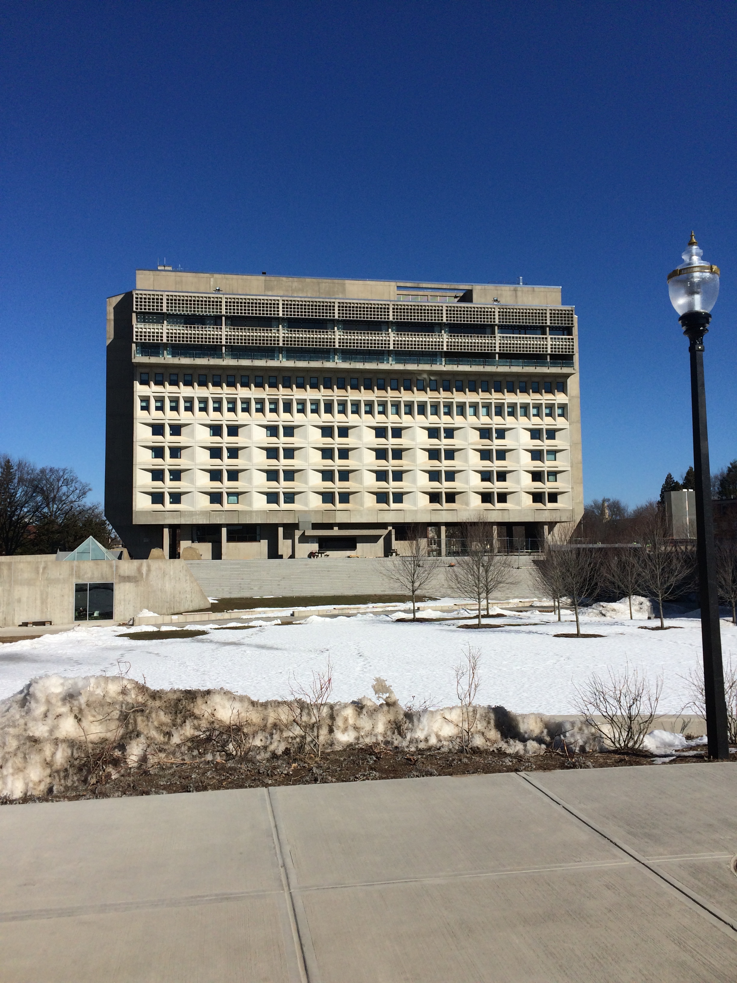 All fine and good, but the simple scale of wind loading isn’t the only problem. As architects Harrison and Abramowitz discovered when the then ultra-slim-looking Empire State Plaza buildings opened in Albany in 1966, buildings sway when subjected to constant lateral loading, and eventually they resonate. As buildings get deflected and spring back into place, they accelerate because of the constant force of wind (f=Ma, no matter what). At the right wind speed, they’ll keep going with surprising velocity. The repetitive motion isn’t necessarily a structural problem (though it can be–this was what brought down the Tacoma Narrows Bridge), but it’s a person problem. We get seasick with repetitive, lulling motions. The legend of the Empire State Plaza is that Nelson Rockefeller, then governor of New York, experienced this with predictably disastrous results upon moving in.