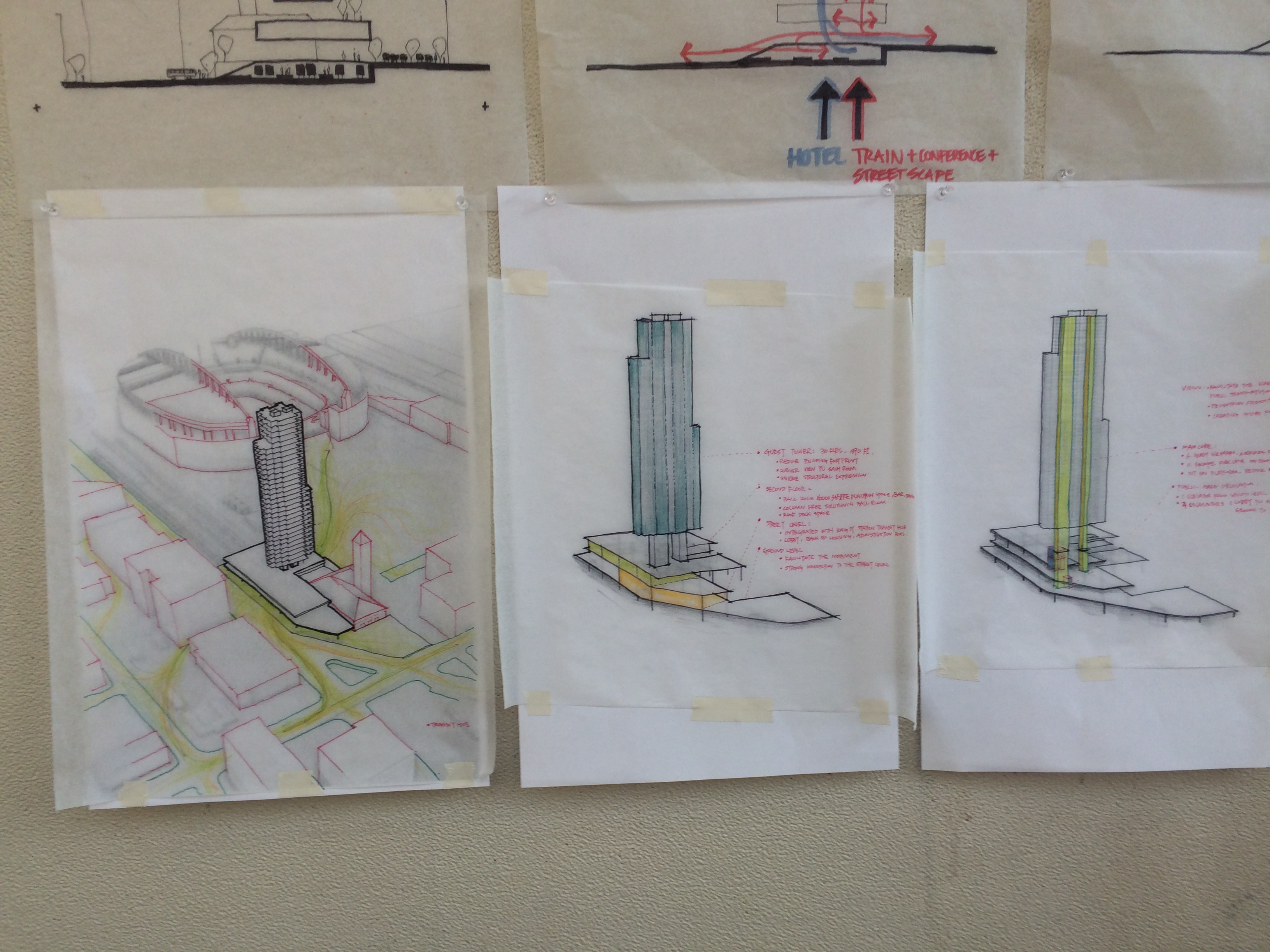World Financial Center held records for height to tallest occupied floor and height to architectural top—until Burj Khaliffa blew past it less than two years after completion. (For the record, it’s 30 meters or so shorter than Sears in the height to tip category, but beats it in the unofficial but not uninteresting category of highest observation deck…) Now, of course, it’s not even the tallest on its block—Shanghai Tower is a good 40 meters taller and its undulating skin emphasizes its status as the eye-grabber of the three. I first saw Arthur Gensler present the idea for the Shanghai Tower at a CTBUH meeting in Chicago in 2009, and in addition to being a gorgeous form it’s remarkably clever. The skin is actually hung outside of a very simply structured cylindrical office tower, with nine skygardens where the floor extends all the way out to meet the exterior. This means that the form of the skin can pretty much be anything—there’s a much simpler façade that encloses the floors themselves. The skygardens are thus 20-story tall spaces that allow the building to breathe naturally; they condition the outside air a bit, which provides a reservoir of still, moderated air for the spaces inside to take in. The shape helps with vortex shedding, the same aerodynamic principle that stabilizes the Burj, but in this case the skin is literally a wind-breaking surface that hung from the offices inside. Shanghai Tower isn’t open to the public yet, but it promises an even taller observation deck than the Financial Center (though, honestly, all that might mean is that there will be more smog between you and what you want to see…)
