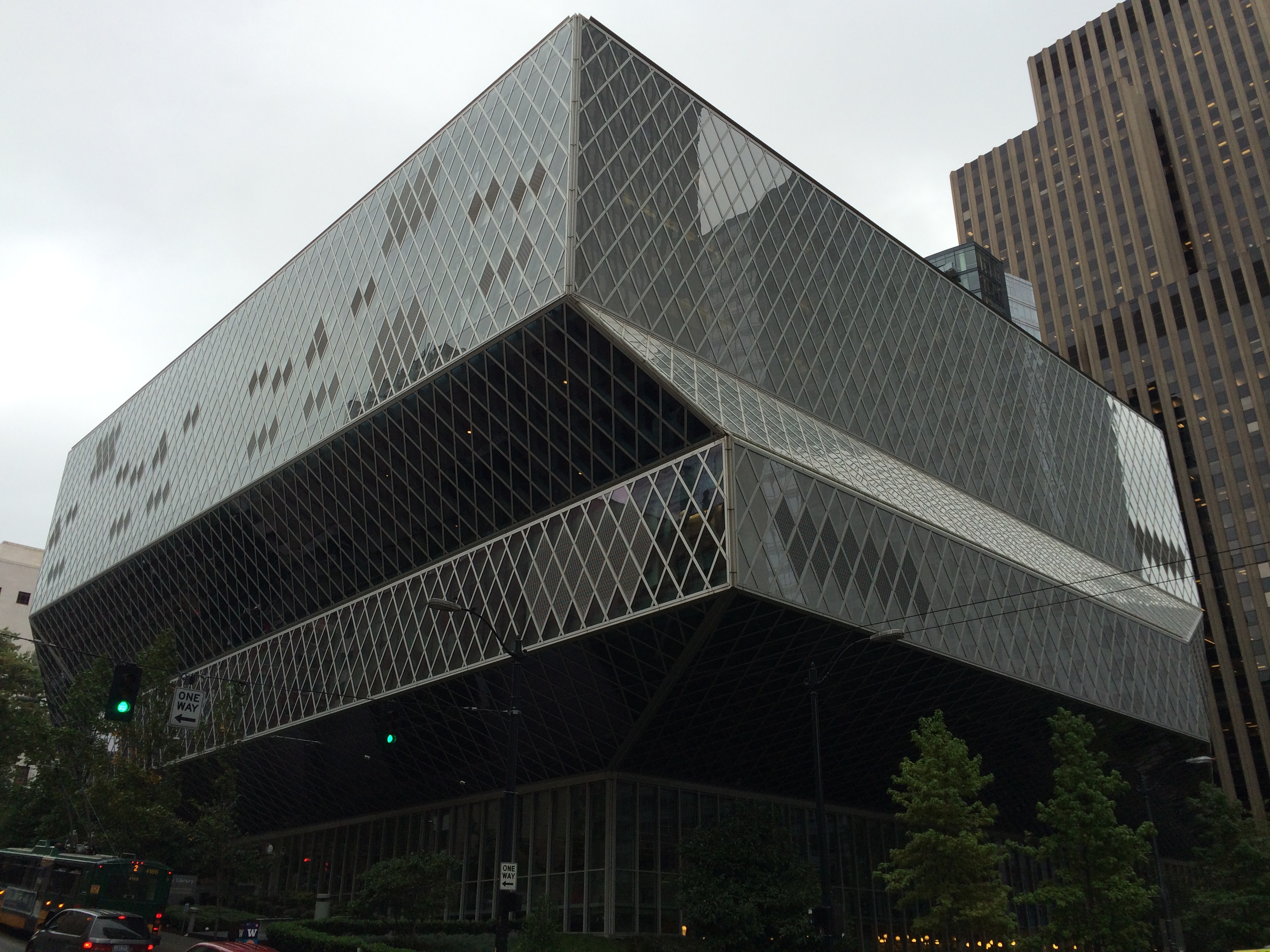 Part of the issue, of course, is the planning of the district itself. One thing that did make it through from the Rogers masterplan was the idea of superblocks—all of the streets are arterials, leaving very large parcels in between. Too large, really, to reasonably negotiate between some kind of street life and the scale of even the largest office floor plate. So what’s left is a sort of urban planning horror vacui, what looks like a need to fill space in some kind of meaningful way. This is the grownup equivalent, I think, of the studio site plan that comes together the night before the review, when all sorts of crazy planting patterns emerge from nothing more than a graphic logic. The superblocks in Rogers’ scheme, of course, were designed to be shot through with public circulation—pedestrian circulation. With the towers and retail malls (a combination that continues on virtually every block—how many Prada stores does one neighborhood really need?) there’s no meandering, and the pedestrian routes are slowly getting raised up onto skywalks to avoid the city’s notorious traffic—red lights here are generally read more as suggestions than anything else.