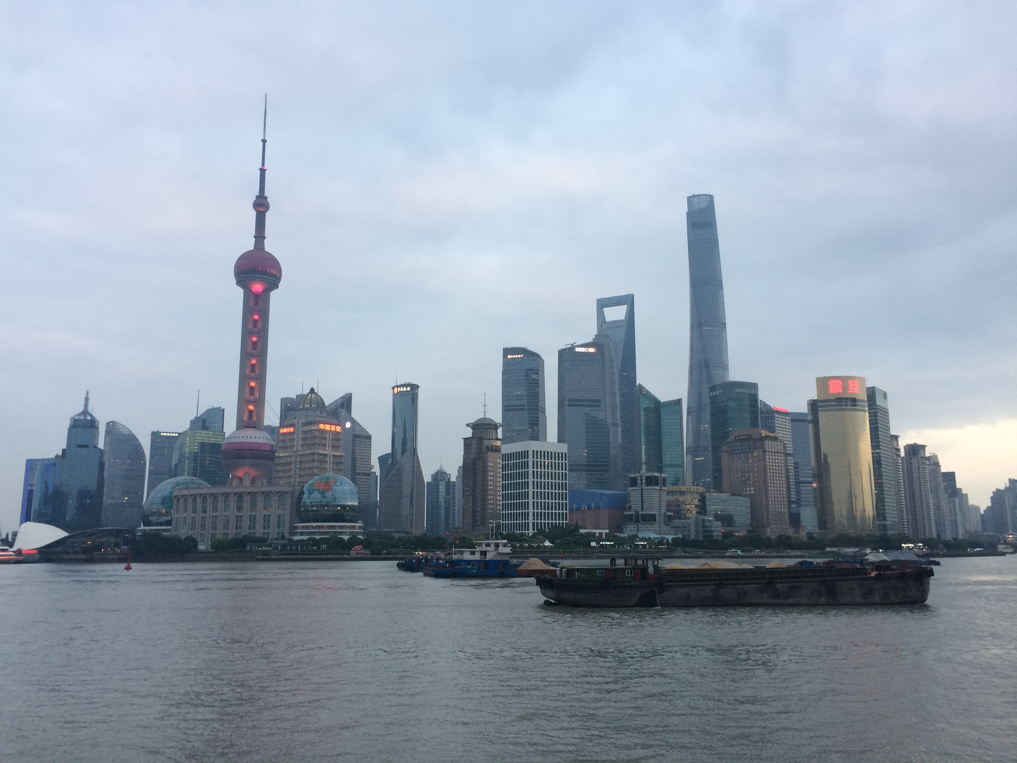 OK, but what you cross the river for, really, is the three supertalls—SOM’s Jin Mao (1999, 420m), KPF’s Shanghai World Financial Center (2008, 494m), and Gensler’s amazingly graceful Shanghai Tower (now-ish, 632m). The three of them—nicely spaced both height-wise and chronologically—also show three approaches to skyscraper form. Jin Mao is perched somewhere between Adrian Smith’s postmodernism of the 1980s (AT&T and NBC in Chicago being the paradigms) and the more rationalized forms of his supertall work with SOM and on his own (Trump in Chicago, Burj Khaliffa, e.g.). The pagoda form disguises the fact that it’s really two towers—a central core office building for the first 60 or so floors, and an atrium hotel for the remaining 28 (8 being the most auspicious figure in Chinese numerology, the tower is of course 88 stories tall). That requires an enormous set of transfer structures to accommodate an eccentrically placed elevator core over the symmetrical tower below—none of which gets celebrated or acknowledged.