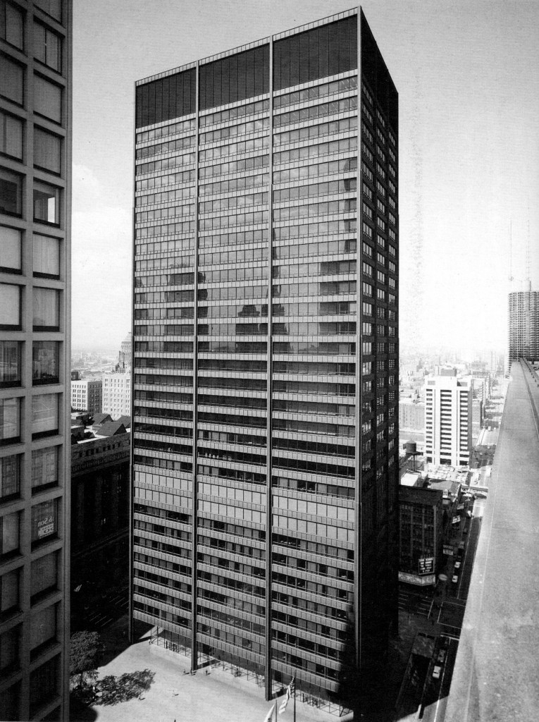 Legitimate arguments can, of course, be made against the Fisher as a true ‘first.’ Its foundations represented a failed experiment in short friction piles by Shankland. The building settled unevenly—it leans toward the east—and a 1907 extension was built in part to install stabilizing caissons under its northern end. Shankland’s was one of several efforts to improve on the imprecise grillage foundations that underlay most of the city’s skyscrapers, but Dankmar Adler’ successful use of caissons under the Stock Exchange in 1895 meant that these, and not friction piles, became the preferred method of supporting tall buildings in the city. It is also true that enameled terra cotta was short-lived as a cladding material, replaced by metals such as bronze, stainless steel, and aluminum, all of which proved to be more exacting and durable. Finally, brick did see a re-emergence as a cladding material in tall buildings. The Chrysler in New York (1929) used white enameled brick to achieve its Reliance-like reflectivity, as did any number of apartment and commercial towers by postwar architects such as Emery Roth in New York and Al Shaw in Chicago. These suggest the complexity of the evolutionary process, which in architecture as in nature is full of false starts, reversions, accidental discoveries and missed opportunities. We recognize complex types such as the “skyscraper” only in hindsight, after enough examples have come into being with similar enough qualities that, on reflection, they seem a single, nameable species. Working backwards to determine the ‘first’ of these applies narrative logic to processes that, in the skyscraper, are far more diffuse and complex. While the Fisher’s claim to being a “first” is debatable, the criteria that it does meet are informative, showing how quickly advances in materials and techniques were marshalled toward meeting the functional and economic impulses of light weight, transparent skins, efficient planning, and rapid construction.