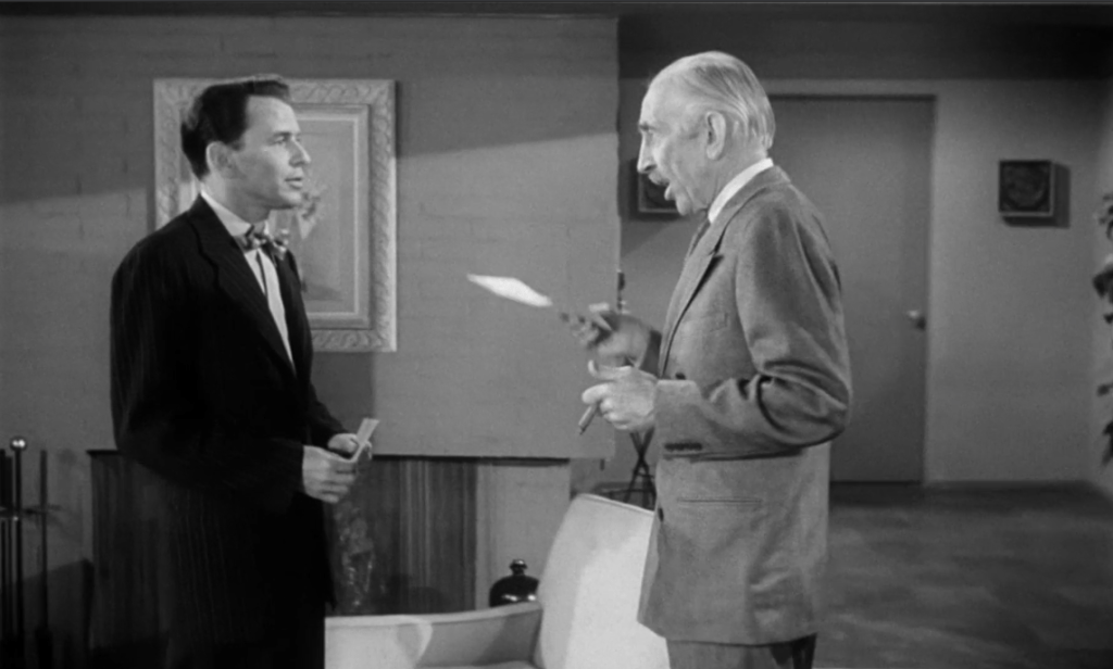 My first thought, of course, was that Preminger made a huge continuity error here–that font is not regulation Allzweck. But, more to the point, this is literally the one establishment shot in the entire movie–the rest of the film is clearly shot on soundstages that are deliberately devoid of any Chicago landmarks. There’s the standard police car with “Chicago” clearly written on its side, of course, but otherwise Preminger didn’t use any landmarks or skyline shots to set the location.