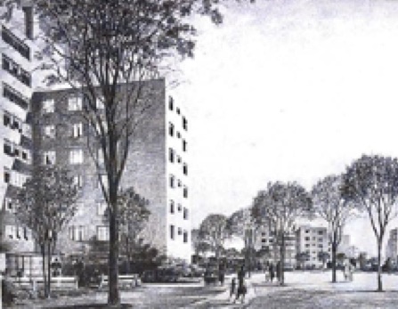 Chicago’s first public efforts at social housing, designed and built between 1938 and 1941, were low-rise row houses and mid-rise garden apartment blocks.[i] The four-story Lathrop Homes on the north side and the Trumbull Homes rowhouses on the far south side re-housed Polish and Italian families living in slum conditions nearby, while the Ida B. Wells row houses and walkup apartment blocks in Bronzeville were intended exclusively for black families.