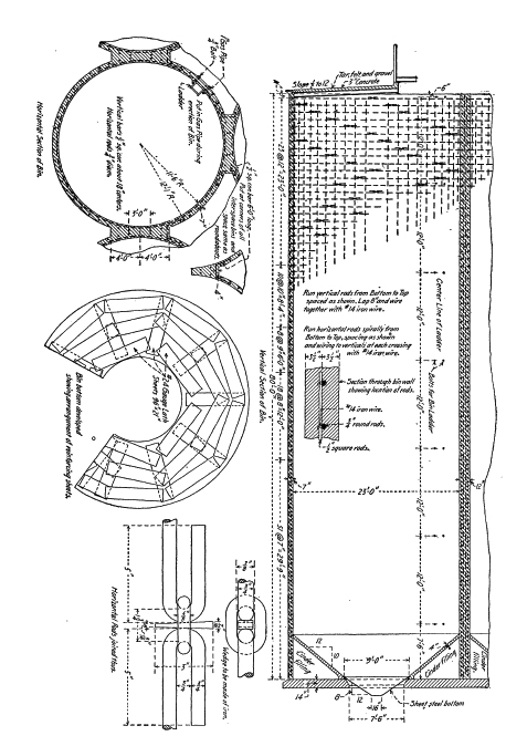 Concrete Elevator construction on the MacDonald System. From the astonishingly comprehensive Milo S. Ketchum, C.E., The Design of Walls, Bins and Grain Elevators. (2d ed., New York: Engineering News Publishing Company, 1911).