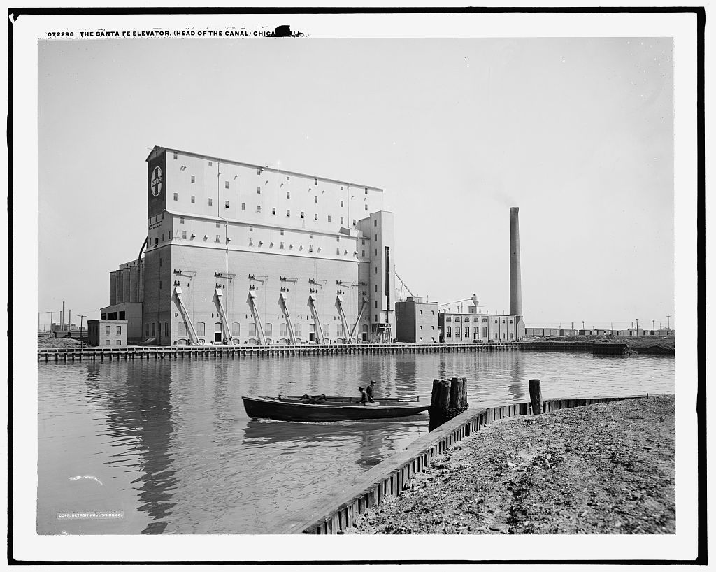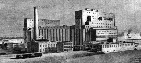 While this all makes for a great case study in construction history, elevators also, like commercial skyscrapers, tracked the growth and development of Chicago and its infrastructure–but on a larger scale. Their reliance on rail and water connections meant that they sprung up wherever these two transport systems connected–first along the main branch of the River, and then farther south as better rail connections were built to the west. An elevator complex on Goose Island rose in response to rail connections to the particularly rich grain belt of the northwest–Minnesota and the Dakotas. And, finally, when new harbor facilities at Calumet replaced those of the congested main branch, the elevator industry moved, wholesale, to take advantage of better facilities there.