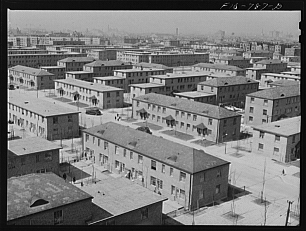 Ida B. Wells Homes, Chicago, IL. Aerial view at opening, 1941. Jack Delano, photographer. (Library of Congress, LC-USW3-000787-D).