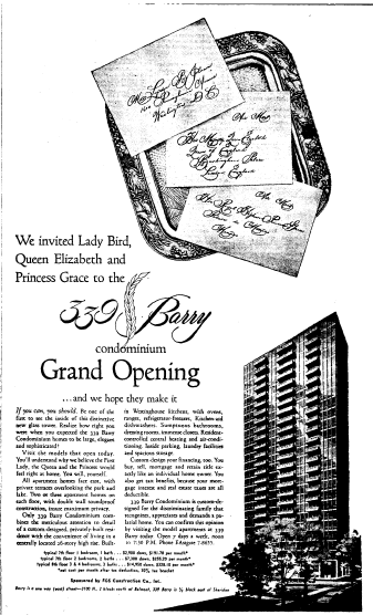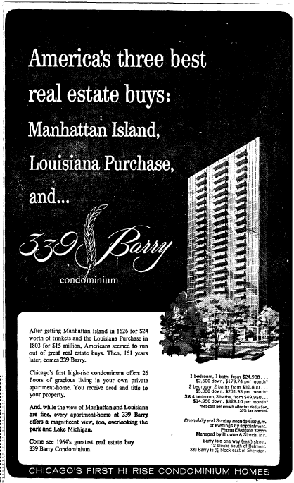 [xvii] Display ad, “339 Barry Condominium.” Chicago Tribune, Apr. 25, 1964. 1-w8.