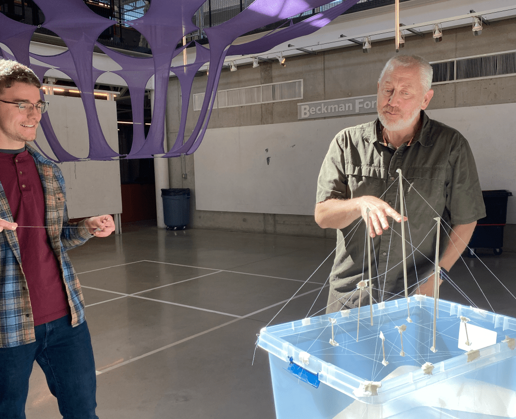Our rough schedule for the Structures Zoo course is to go from heavy to lightweight, introducing students to more and more exotic structural types as we go (sort of like going from the goats in the petting zoo up through the penguins, orangutans, and eventually the lions…) We’re closing in on the end of the semester, and the last lab or two should be doozies, but the more recent one definitely turned a corner as we went from membrane structures to what I think of as networked structures.