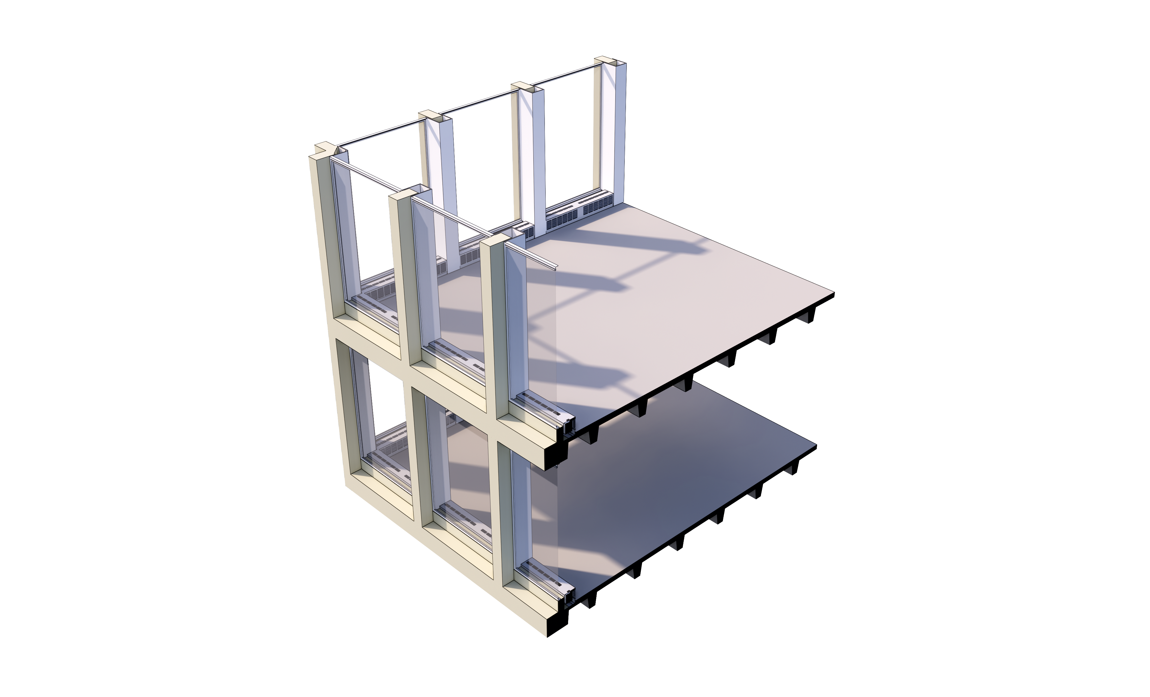 Automotive machinery manufacturer Borg-Warner signed a lease for the top five floors in January 1956, ensuring the project’s viability and lending it a new name.[iii] The project also gained local backing from Samuel Banowit, a Chicago attorney who had launched his downtown efforts in 1952 by purchasing the Boston Store at Madison and Dearborn (Holabird and Roche, 1905). Banowit retained Lescaze as a “consulting architect” but hired A. Epstein & Sons to lead the project.[iv] Epstein produced a more restrained design, published in May 1956, that abandoned Lescaze’s gold anodized skin for “either aluminum or stainless steel vertical fins and window sash with spandrels…of navy blue porcelain enamel.” The lobby evolved, too. It would contain a showroom for Borg-Warner’s heavy machinery set against black and pink marble walls with more durable terrazzo floors.[v] Architectural Record published the project in March 1957. By that time, Epstein and Lescaze had settled on aluminum mullions in a natural finish and blue porcelain-enameled steel for spandrel panels.[vi] The blue spandrels would contrast with the Loop’s stone-and-brick surroundings, but Epstein thought it was less ‘faddish’ than the original gold and black and better aligned with Borg-Warner’s image.[vii] The contrast between the new building’s construction and the Pullman’s drew as much interest. The curtain wall, still a novelty at “only 1-1/2 inches thick,” compared with Pullman’s “massive stone walls, some of them 9 feet thick,” in the words of the Tribune’s Ernest Fuller. This wall’s spandrel panels were still backed up with masonry fireproofing— “to comply with Chicago building regulations”—though these knee walls were no longer required. Like the Prudential, Borg-Warner backed these spandrel walls with perimeter air conditioning cabinets that blanketed the curtain walls with seasonal hot or cold air and automatic elevators—still noteworthy in the building’s opening press for eschewing human operators—including a dedicated cab to Borg-Warner’s 21st-floor penthouse executive offices.