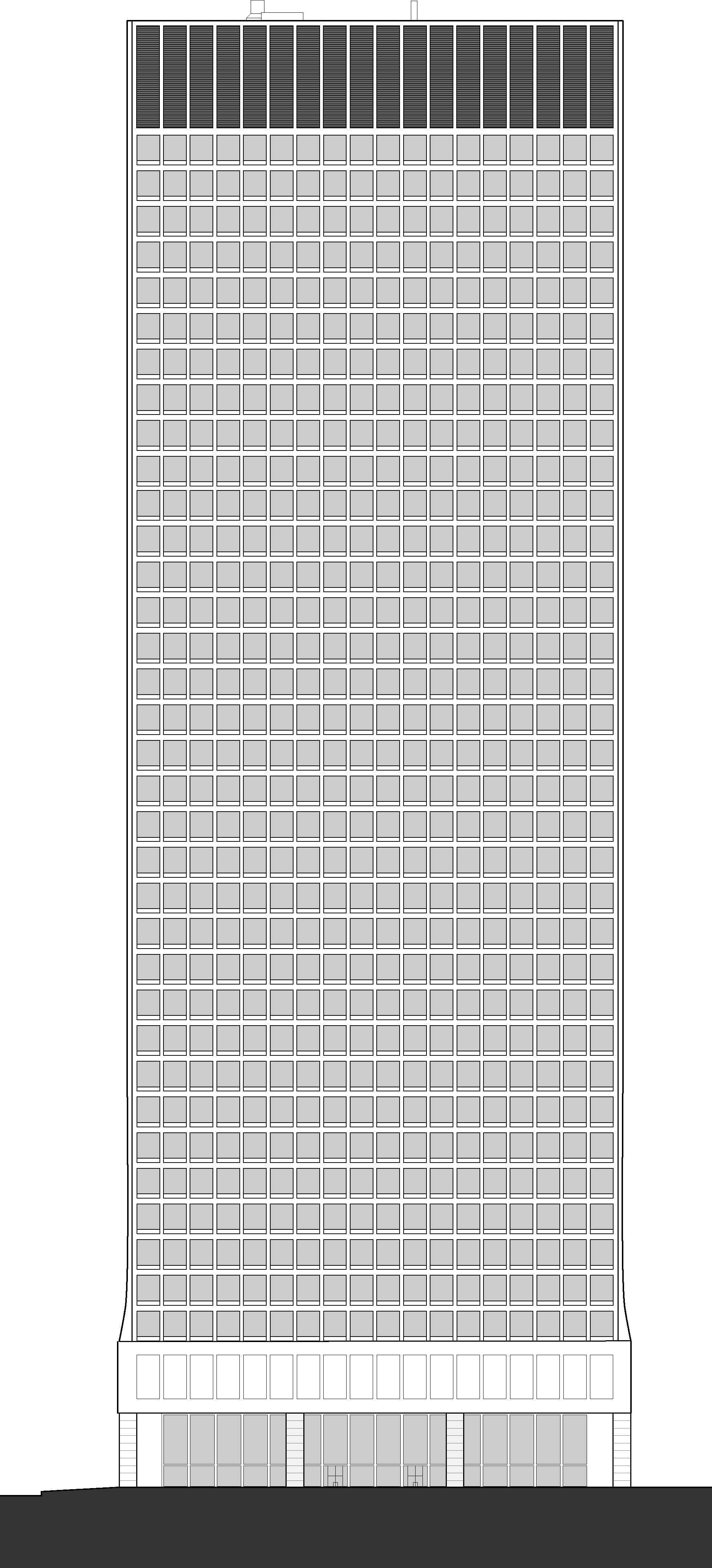 Inland Steel and Prudential were new headquarters buildings funded by large corporations. A more serious indication of faith in the Loop would be a purely speculative investment—developers constructing skyscrapers in anticipation of future tenants. This had formed the bulk of the downtown real estate market before the depression, but the lack of demand throughout the 1940s and early 1950s discouraged such optimism. It was notable, therefore, when Robert McCormick, Jr., representing the New York investment firm Collins Tuttle & Company, presented plans for a 20-story tall office building on the corner of Michigan and Adams in October 1955. The Pullman Company, which had occupied a 10-story headquarters building on the site designed by Solon Spencer Beman since 1884, would sell the site and would take 35,000 square feet of space in the new building, but the remainder of the proposed 362,000 square feet would be speculative. The Pullman Building was obsolete, the company’s spokesman emphasized, “erected…before the day of steel skeleton construction…its brick and granite walls are several feet thick.”[i]