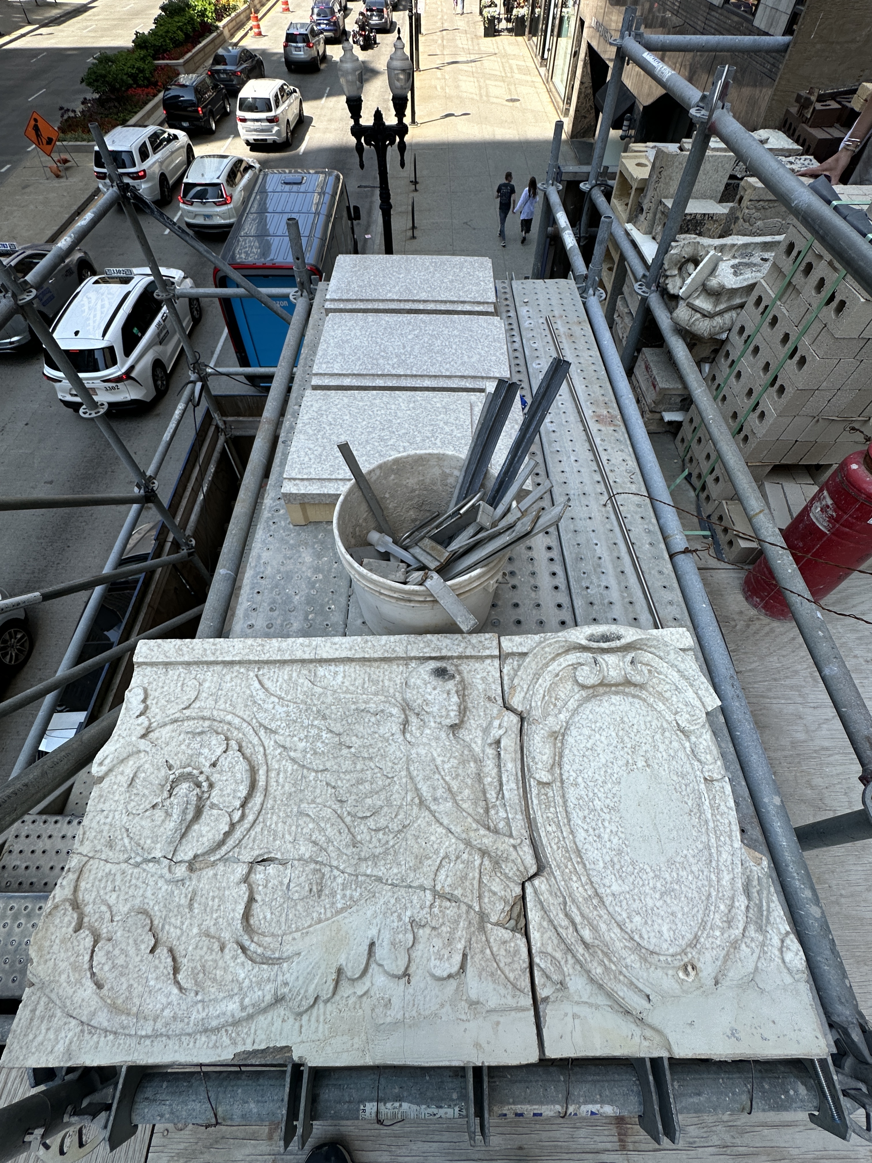 Actual Adler and Sullivan cast/wrought iron elements. It would be happier to see these in situ, but still fascinating to see in the job site yard at Pilgrim Baptist.