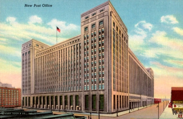 But, alas, cooler heads prevailed. The air mail facility was moved to Municipal later that year (a former air mail pilot named Lindbergh helped inaugurate it), and the postoffice design evolved to the four-towered, vertically-striped behemoth that has enjoyed a rebirth as a giant commercial office building. The erstwhile rooftop runways are, in fact, now an outdoor amenity deck. But even if aircraft aren’t landing on top of the Old Post Office, the building maintains the distinction of being one of the few structures to have an expressway burrowing through it, at least…
