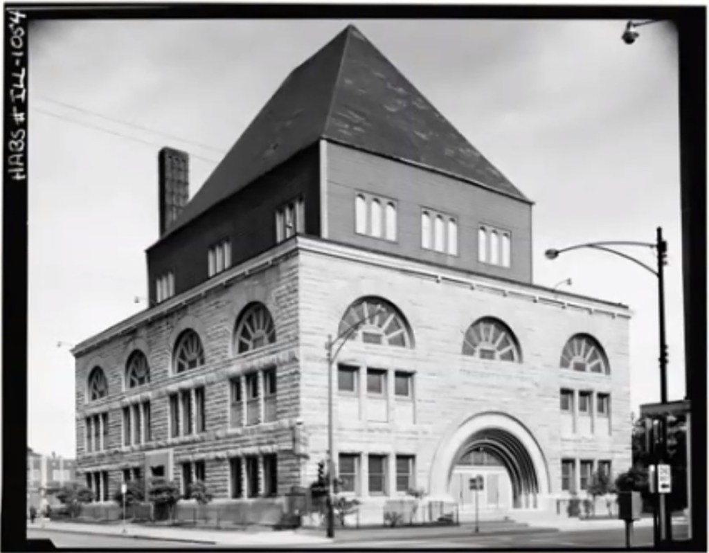Dankmar Adler and Louis Sullivan designed the Kehilath Anshe Ma’arav Synagogue in 1890 as a worship and community center for the German-Jewish community in Douglas. As the Black community grew with the first wave of the Great Migration in the 1910s, KAM sold the Synagogue to the Pilgrim Baptist Church in 1922. The Church’s Music Director, Thomas A. Dorsey, was a visionary composer and performer who blended spiritual and blues traditions into the style first called Gospel Blues and, by the 1930s, simply Gospel. Pilgrim Baptist was a landmark in the Gospel world for seven decades, its 3000 seats filling for artists from Chicago, particularly Mahalia Jackson. Aretha Franklin, James Cleveland, and the Staples Singers performed regularly, and Martin Luther King, Jr. preached there during the Civil Rights movement.